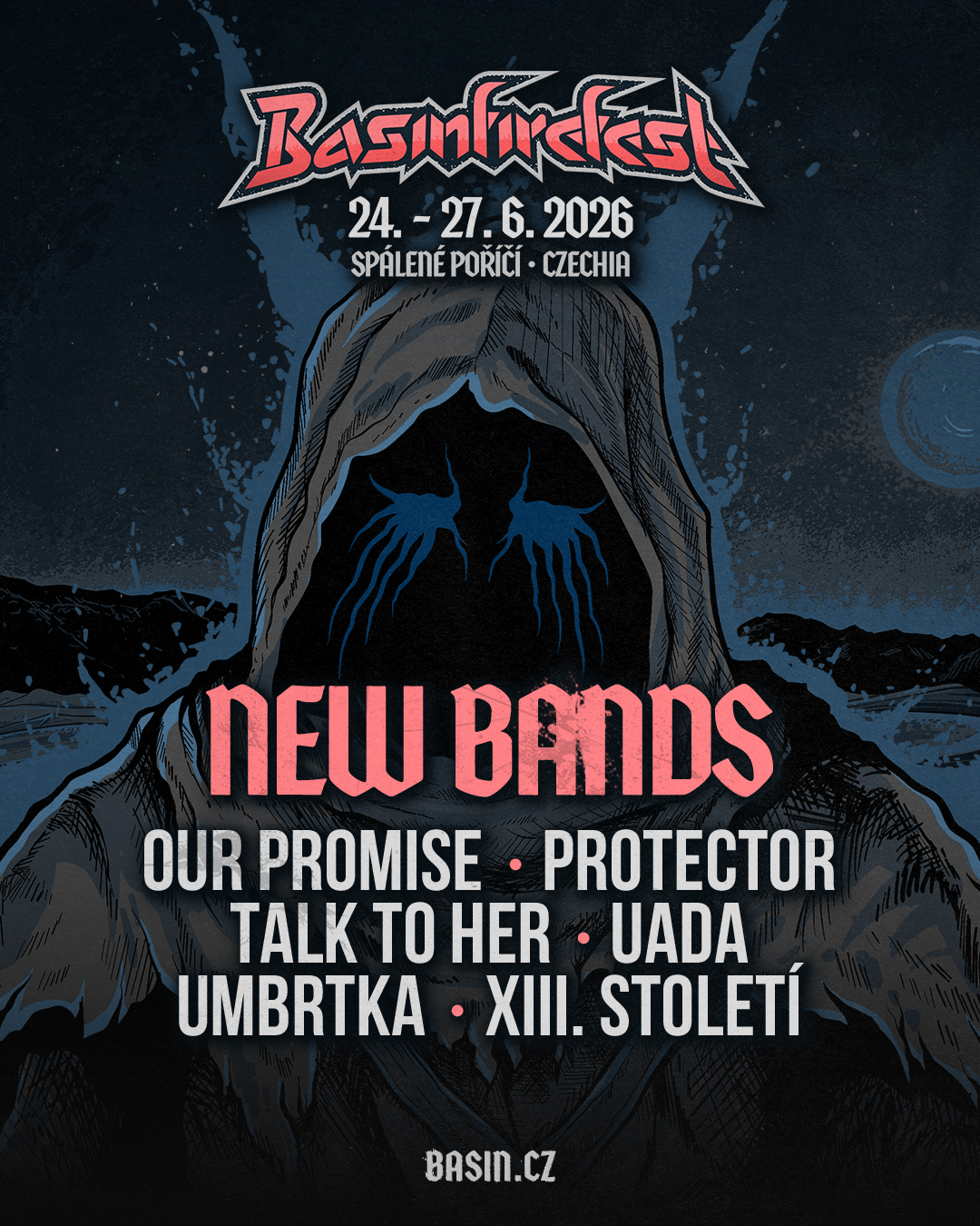 K tomu přidej výjimečný koncert téměř nekoncertující plzeňské legendy Umbrtka a gothicrockových pionýrů XIII. Století a vyjde ti tajenka, která má jediné řešení: Basinfirefest 2026.